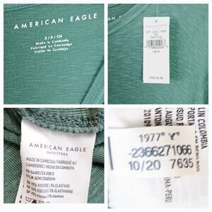 American Eagle SZ S Boat Neck Long Line Tee Green