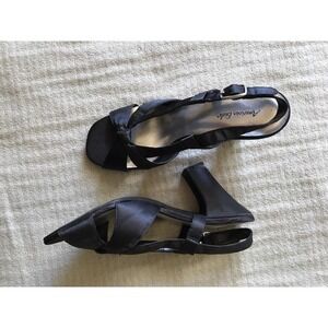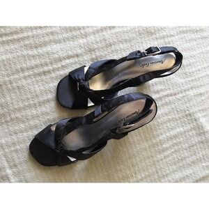 American Eagle Sandal Black Sz7.5 Satin Strappy Chunky Heels Pre-Owned
