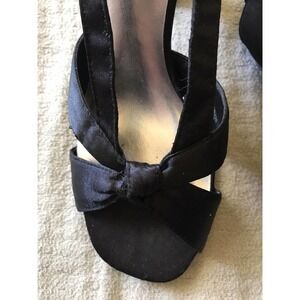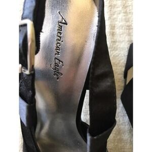 American Eagle Sandal Black Satin Strappy Heels Pre-Owned. Condition is Pre-owned. Shipped with USPS Media Mail.
