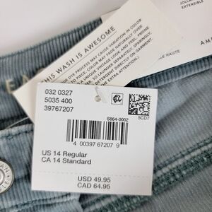 American Eagle Seafoam Green High Rise Stretch Corduroy Jeggings Sz 14/32 NEW