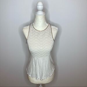 American Eagle, Sequin Trim Boho Eyelet Tank Top Peplum Swing Babydoll Tank XS