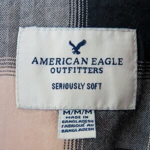 American Eagle Seriously Soft Black And Tan Plaid Button Down Shirt Medium