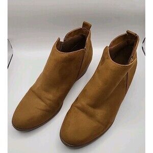 These are American Eagle Shannon suede boots in size 6.5 with an almond toe shape and color block heel in walnut brown. They are ankle boots with a pull-on closure, suitable for various occasions like parties, casual wear, and work. The low block heel provides comfort, making them ideal for winter, fall, and spring. The boots feature a standard shoe width and are made of synthetic lining with a rubber outsole.