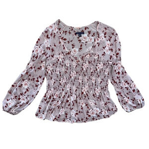 American Eagle Sheer Smocked Babydoll Top Size Small Blush Floral Boho Preppy