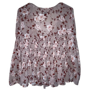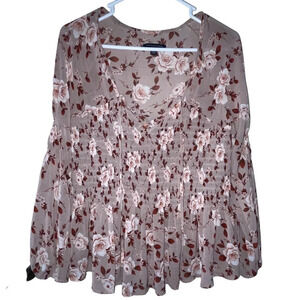 American Eagle Sheer Smocked Babydoll Top Size Small Blush Floral Boho Preppy
