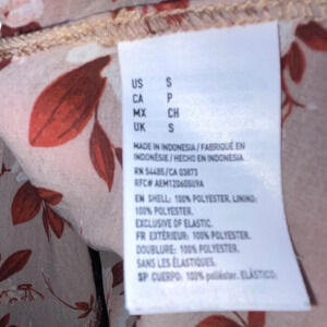 American Eagle Sheer Smocked Babydoll Top Size Small Pink Red Floral Boho Preppy
