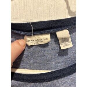 American Eagle “Sheer” T Shirt Womens Ringer Tee M Short Sleeve Blue Vintage