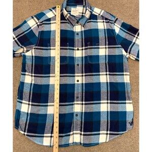 American Eagle Shirt Mens 2XL Heritage Flannel Blue Plaid Long Sleeve Button Up
