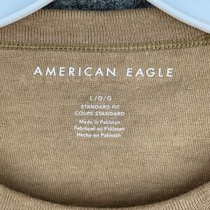 American Eagle Shirt Mens Large Beige Striped Cotton Standard Fit Retro Style
