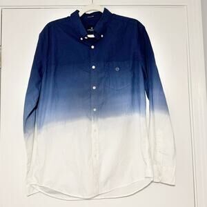 Mens Ombre American Eagle Long Sleeve Button Up Shirt. Navy, Blue, White.