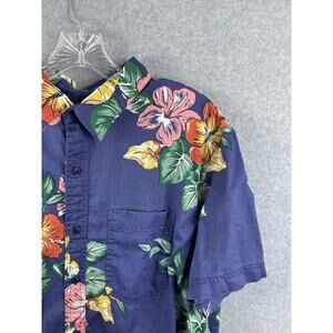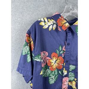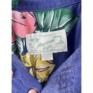 American Eagle Shirt Men's XL Blue Short Sleeve Button Up Hawaiian Floral Beach