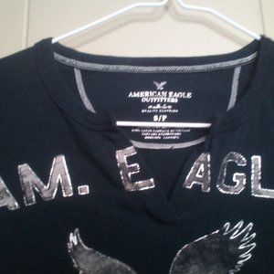 American Eagle Shirt S Short Sleeve V-Neck Black Silver