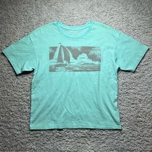 American Eagle Shirt Womens Small Crewneck Tee Crop Top Sail Boat Beach Casual