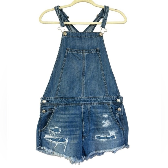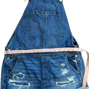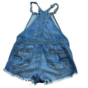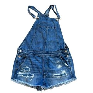 American Eagle Short Distressed Overalls Women’s Medium Blue Jeans Beach Summer