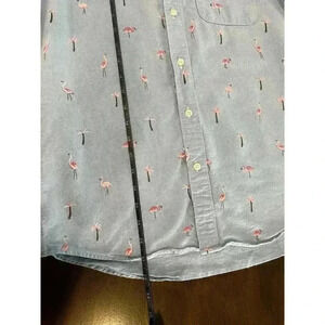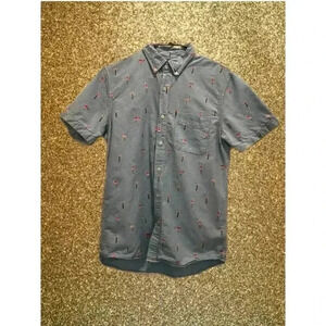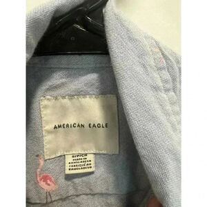 American Eagle Short Sleeve ButtonUp Flamingo Shirt Sz S Blue Pink Cotton (0189)