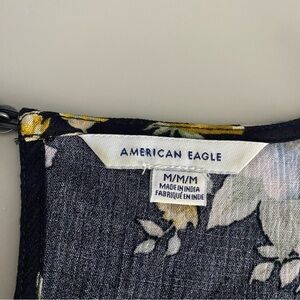 American Eagle Short Sleeve Wide Leg Jumpsuit Medium Black Yellow Blue Floral
