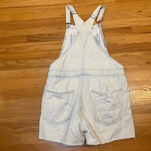 American Eagle Shortalls Womens Small Denim Distressed Light Wash Bleach Grunge