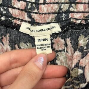 American Eagle Shorts Floral Pink Black M Paperbag Waist Wide Leg Boho Fairy Summer Boho Wide Leg Breezy Shorts