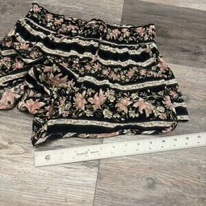American Eagle Shorts Floral Pink Black M Paperbag Waist Wide Leg Boho Fairy