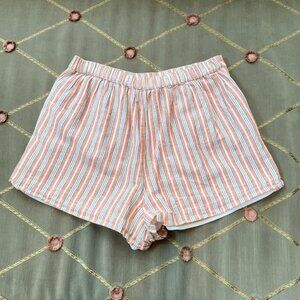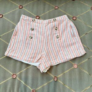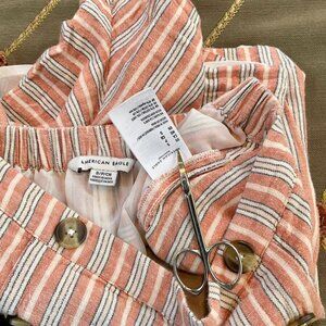 American Eagle Shorts High Rise Sailor Stripe Cotton Linen Red Multi (S)