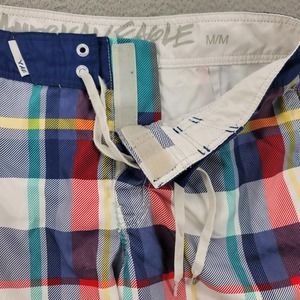 American Eagle Shorts Mens Medium White Plaid Patch Pockets Board Shorts Swim