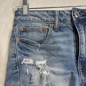 American Eagle Shorts Size 6 Hi Rise Festival Stretch Blue Denim Distressed