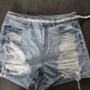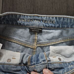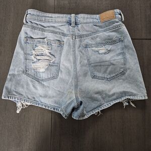 These American Eagle Shorts in size 4. With a vintage feel and a distressed blue color, these mid-rise shorts feature a zipper fly. See pictures for measurements