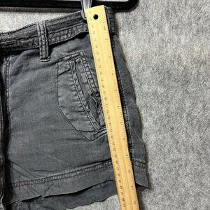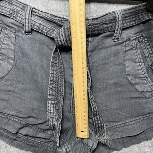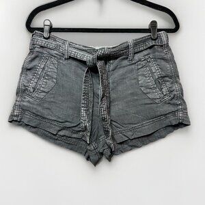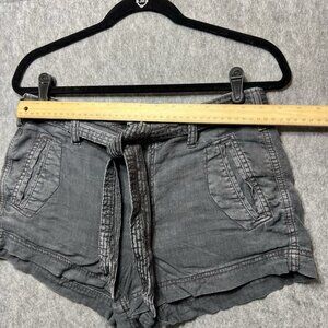 American Eagle Shorts Women 8 Linen Blend Gray Faded Black Belted Tie Front