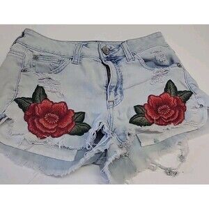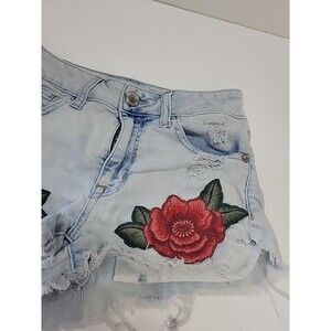 American Eagle Shorts Womens 2 Blue Hi-Rise Shortie Super Stretch Embroidered