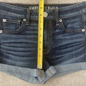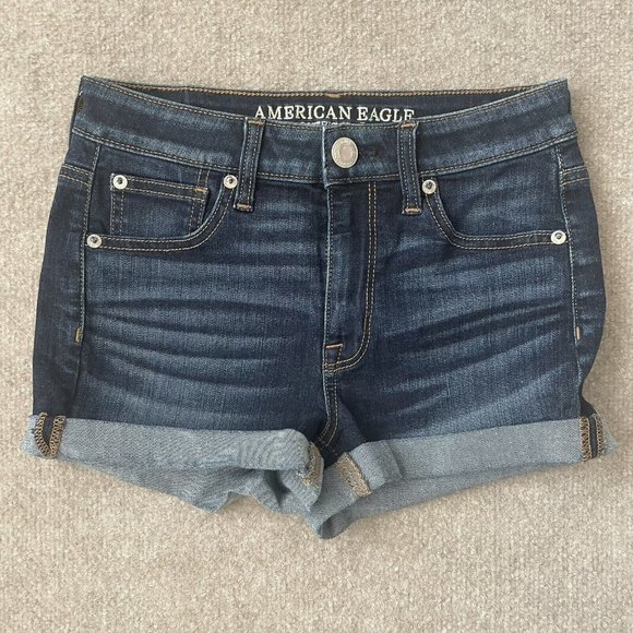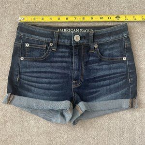 American Eagle Shorts Womens 2 Hi-Rise Shortie Cut Off 4" Inseam Dark Wash Denim