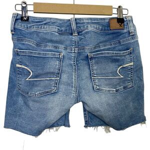 American Eagle Shorts Womens 4 (28" Waist) Blue Denim Midi Frayed Hem Cut Off
