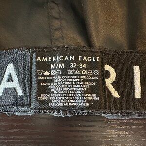 These are so cute! High-waisted American Eagle silky black pajama / lounge shorts. They have POCKETS! They're cute up high, or rolled over, revealing the American Eagle branding around the waistband.