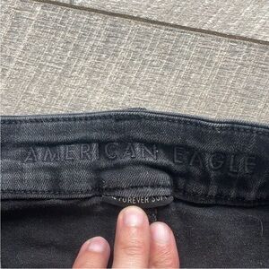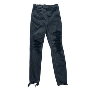 American Eagle Size 0 Black Distressed Super High-Rise Jeggings.