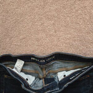 Size 12 American Eagle Super Hi-Rise Flare Denim Jeans in Dark Rich Indigo, 4 real pockets and even a small one for change. In great condition!