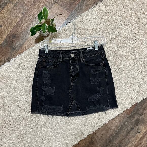 American Eagle Size 2 Black Distressed Button Fly Denim Mini Skirt
