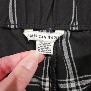 American Eagle Size 2 Black Plaid Super Hi-Rise Skinny Cropped Pants Drawstring