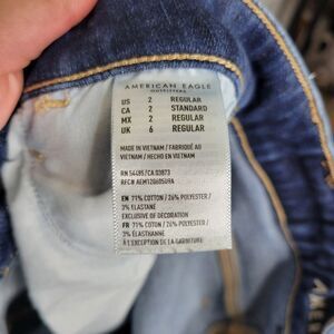 American Eagle Size 2 Dark Wash High Rise Cropped Distressed Raw Hem Jeggings