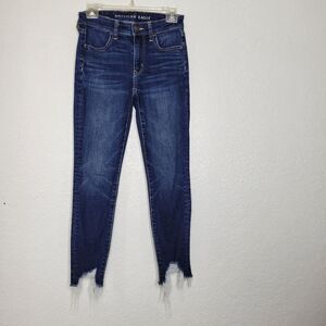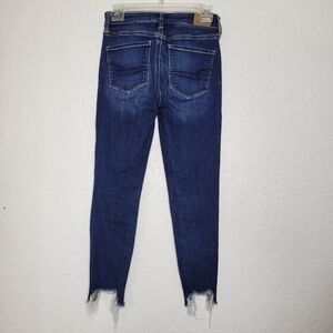 American Eagle Size 2 Dark Wash High Rise Cropped Distressed Raw Hem Jeggings Jeans