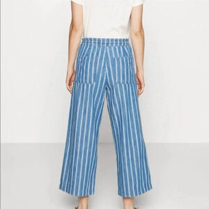 American Eagle Size 2 Regular Blue Cotton Striped Wide Leg Crop Pants Cropped