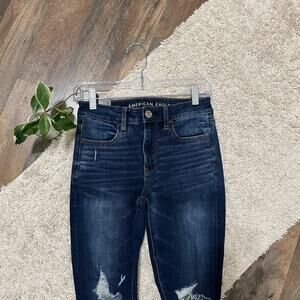 American Eagle Size 2 Short Dark Wash Distressed High Rise Jegging Skinny Jeans