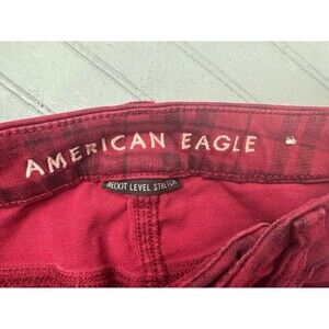 American Eagle Size 2 Womens Jean Curvy Hi Rise Jegging Skinny Red Plaid Stretch