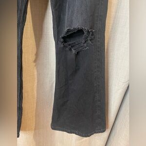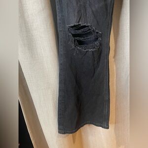 AE Wide leg flare black jeans with distressed knees. 27” inseam. Size 2 short.