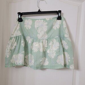 American Eagle Size 4 Pistachio / Mint Green with Ivory Flowers Micro Mini Skirt