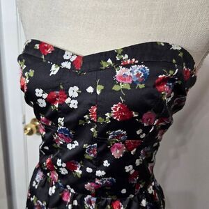 American Eagle Size L Strapless Black Floral Smocked blouse