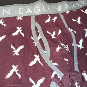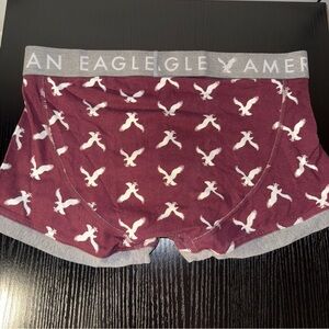 American Eagle men’s size medium Burgundy trunk with white eagle design. Soft gray waistband and trim.