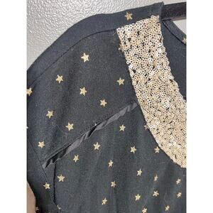 American Eagle Size Medium Gold Star and Sequin Collar short sleeve shirt Black