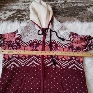 American Eagle Size Medium M Maroon Zipper Sweater AE Sherpa Hood Lined Comfy