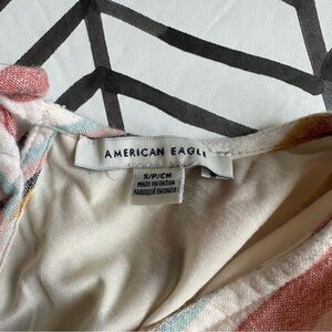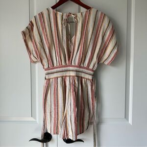 American Eagle Size S Striped Deep V-Neck Short Pastel Linen Blend Romper