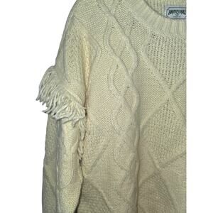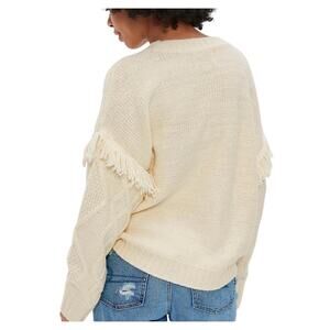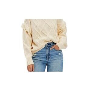 American Eagle Size Small Cream Fringe Cable Knit Cream Sweater EUC
