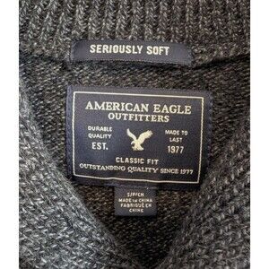 American Eagle Size Small Knit Sweater Mens AE Shawl Collar Pocket Gray Classic